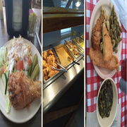 Seafood Buffet Cat Fish Fries Shrimp Cocktail and Hush Puppy